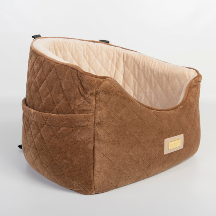 Love this unit for my dog; she feels happier riding in the car when she can look out the window and see "where" we are going. Unit is soft and attractive and it's easy to strap her collar and leash to the seatbelt and into the unit.